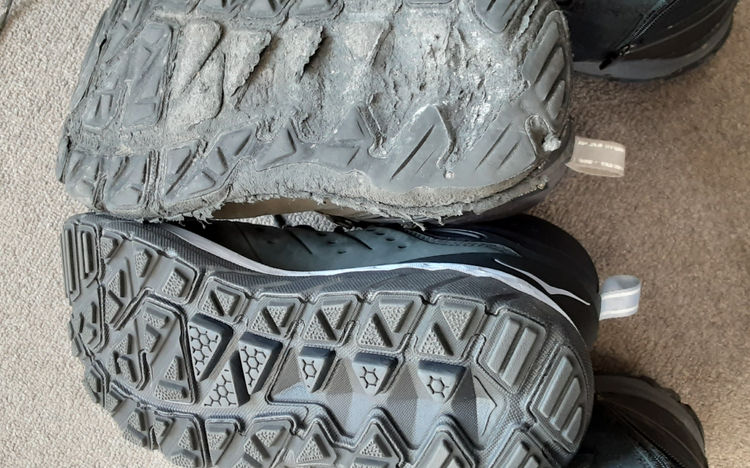 I was looking at the bottoms of my hiking boots from last summer’s 1500 mile hike to see if I really needed new ones. I compared them to a new pair in the store. Yep. It was pretty obvious. The old ones did not have another 1500 miles left in them. I bought the new ones. But what to do with the old pair?