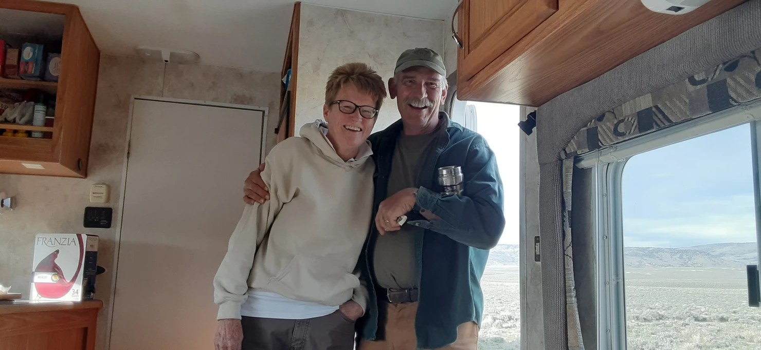 The man, Steve, carried my pack to their camper. He introduced me to his wife, Kathy, who I learned played violin for years in the Wyoming symphony orchestra. “You looked like you could use some help,” she told me before setting a glass of water and a plate of fried chicken and potato salad down in front of me. They then pulled out some binoculars and spotted a jeep on the horizon. While Kathy plied me with water and more food, Steve went off in his truck in search of Melissa.
