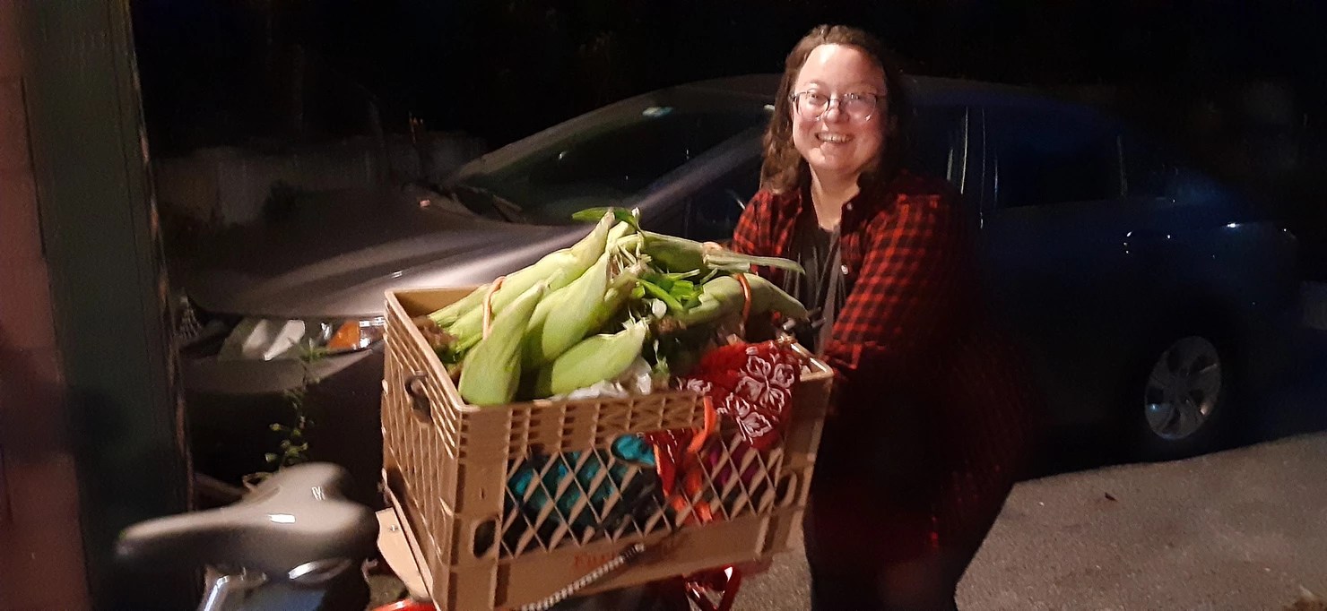Arriving with corn for my overnight hosts