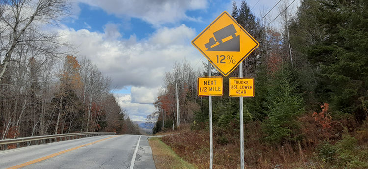 Temps were in the low thirties, and I felt I was in a winter wonderland as the snow-covered trees glistened in the morning sun. Singing snowy songs helped me forget about my cold toes. But as I started downhill, attaining speeds over 30 mph, I could no longer ignore the cold. When I reached a sign telling me I was in for a descent with a 12 percent grade I pulled over and put some hand warmers into my socks. I told myself to be glad it was not raining. That helped until ice pellets began falling from the sky. I made one hot-chocolate stop in Ludlow. By the time I finished it, the hand warmers were doing their job in my socks, and I was able to ride quite happily for the rest of the day. It is amazing what a difference being warm makes.