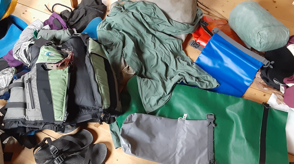 As I write this it seems like a lot of “stuff” though compared to what I live with at home it is nothing. I will wear the same clothes every day for at least a week. I can rinse things in the river as need be. My “household and kitchen” items will be stripped to the bare necessities.