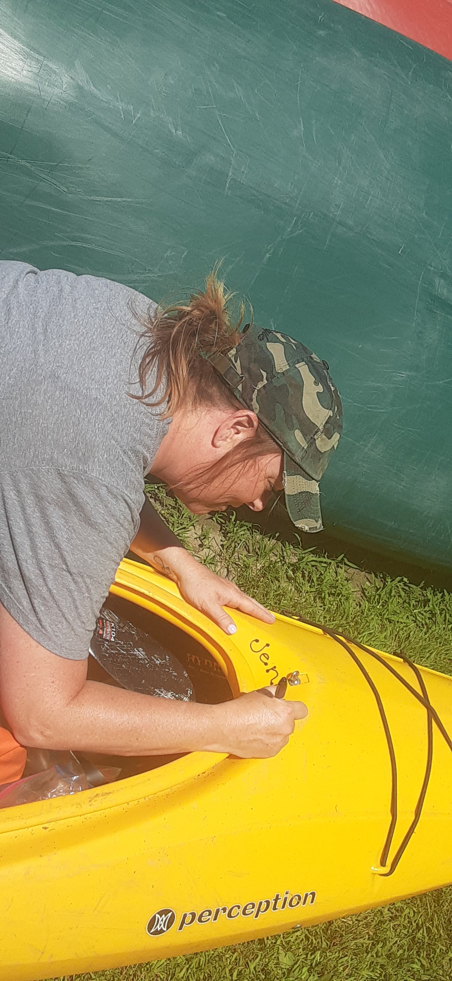 We all marched down to my boat, Lisa with black sharpie in hand. There, this once orphaned kayak was christened “Jenny.” Lisa wrote it on the back and also on the front so I could see it as I paddled.