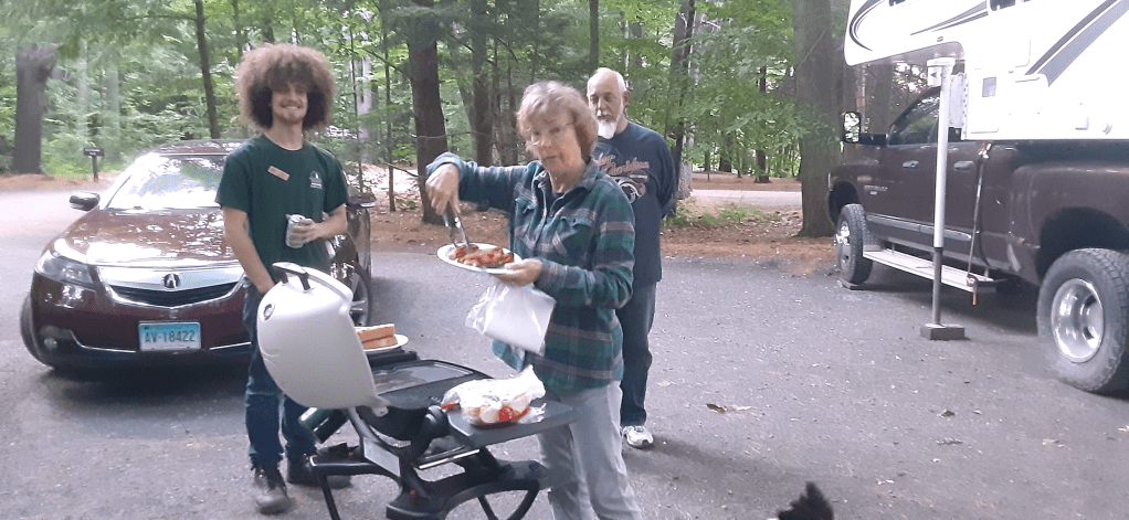 Michael gave me quarters so I could rinse off in the campground shower. Deb cooked me dinner and surprised me with some watermelon! She had been a white water paddler and I enjoyed hearing her stories. We were joined for dinner by Ian, a young man working at the park who was interested in hiking and paddling. I was glad to share my knowledge with him, encouraging him to go for his dreams.