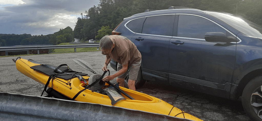 Three times my entire boat and trailer flipped on its side when the wheels caught on some very uneven rocks. Then I had to reach into the poison ivy to right it. This certainly was nothing like the easy portage I remembered it being with my lightweight whitewater boat!