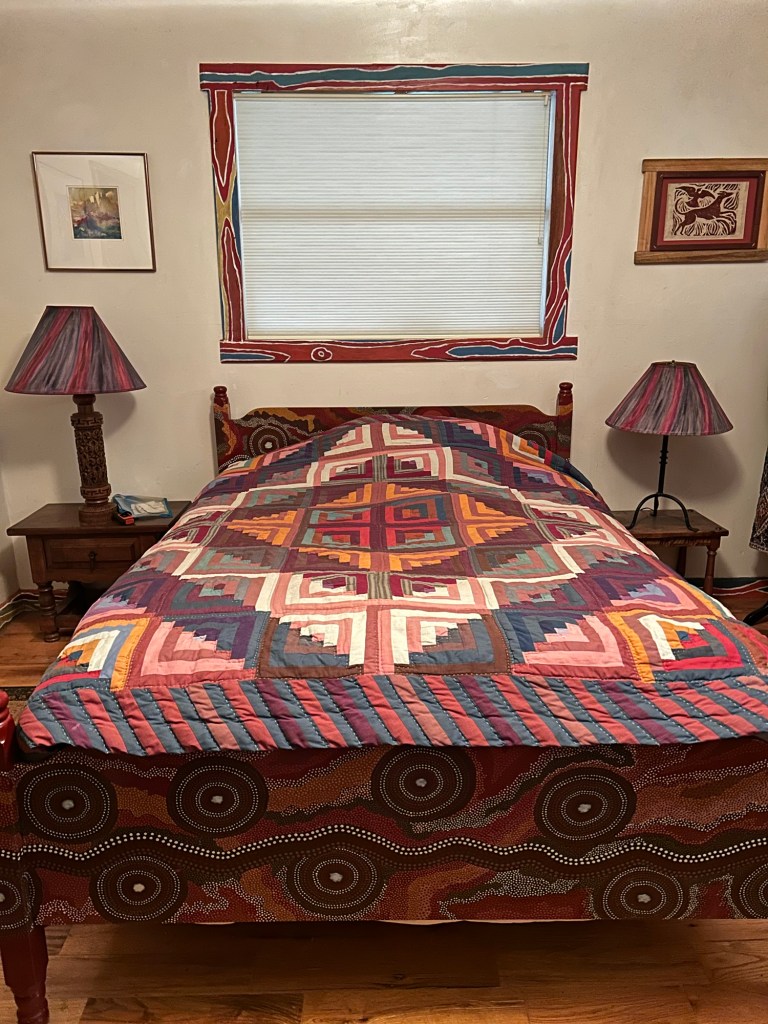 Kate has lived all over the world and is quite the artist. She works with paint, she built wooden furniture, she makes quilts, and she’s done tiling, including a wall in her bathroom and the floor in her kitchen with designs inspired from places she has traveled to starting at a very young age.