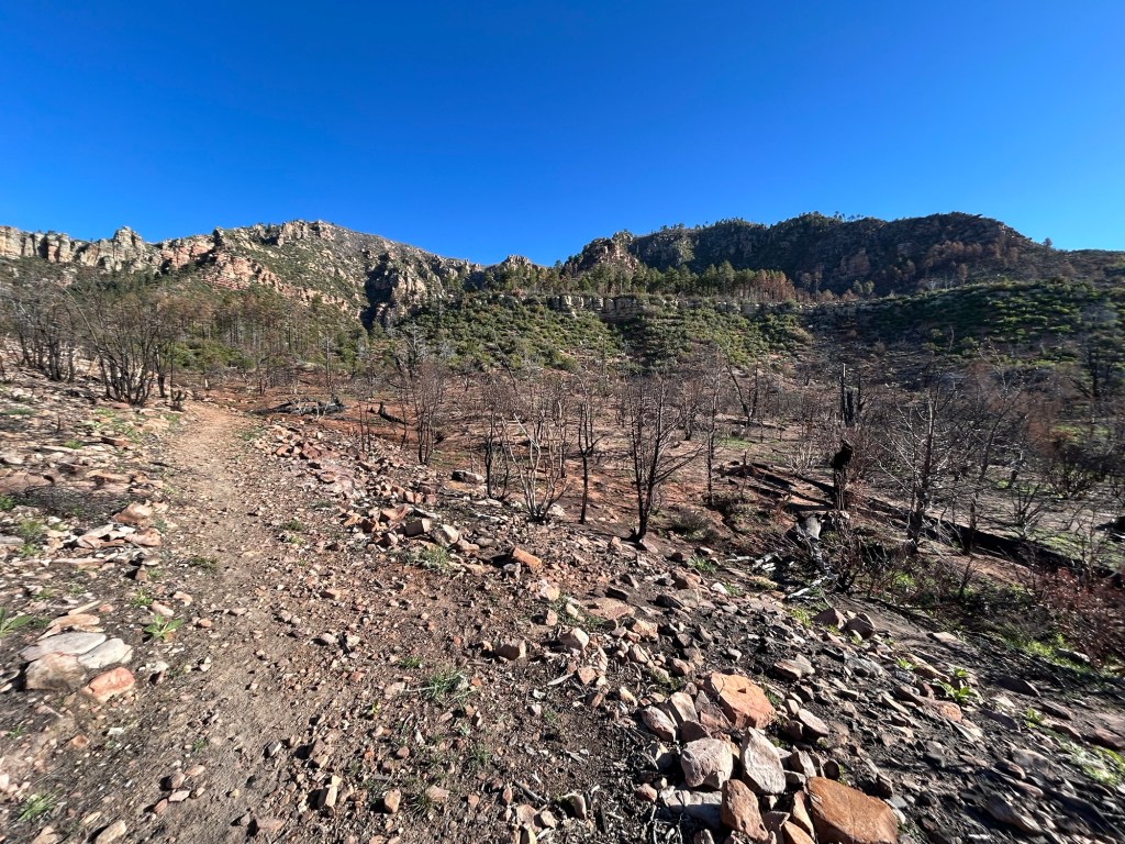 AsI was contemplating leaving Pine, trail angel Becky from Tonto Basin near the Roosevelt Marina texted me and told me she would be up at Pine and would like to take me out to lunch, so after packing up and saying goodbye to Kate, I went off with Becky for a delicious lunch of three empanadas made better by sharing great conversation. She dropped me back at the trailhead just before noon, and I was thrilled to discover that the trail was much easier hike than it had been. Even though I got a late start, I managed to hike 14 miles that day. I was quite tired by the time I made camp, but also satisfied with my accomplishment.