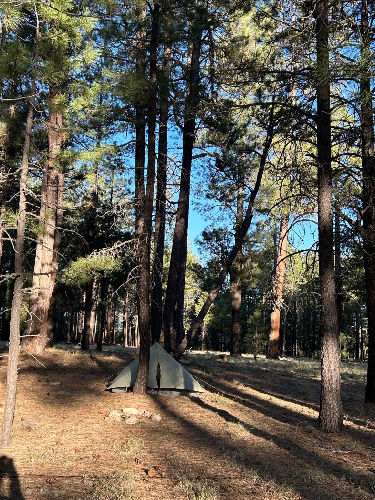 I was surprised to find as I walked along through some magnificent Ponderosa pine forest that I was actually a little bored. The hiking was fairly easy and the scenery was pretty consistent, so to make matters a little more interesting I decided that since I was planning to get water at a cow tank about a half mile off the trail, I would cut cross-country to return to the trail rather than doing an out and back. It’s always a little scary to me to get off trail but I love the feeling of accomplishment I get at seeing that my map and compass skills still get me where I need to go.