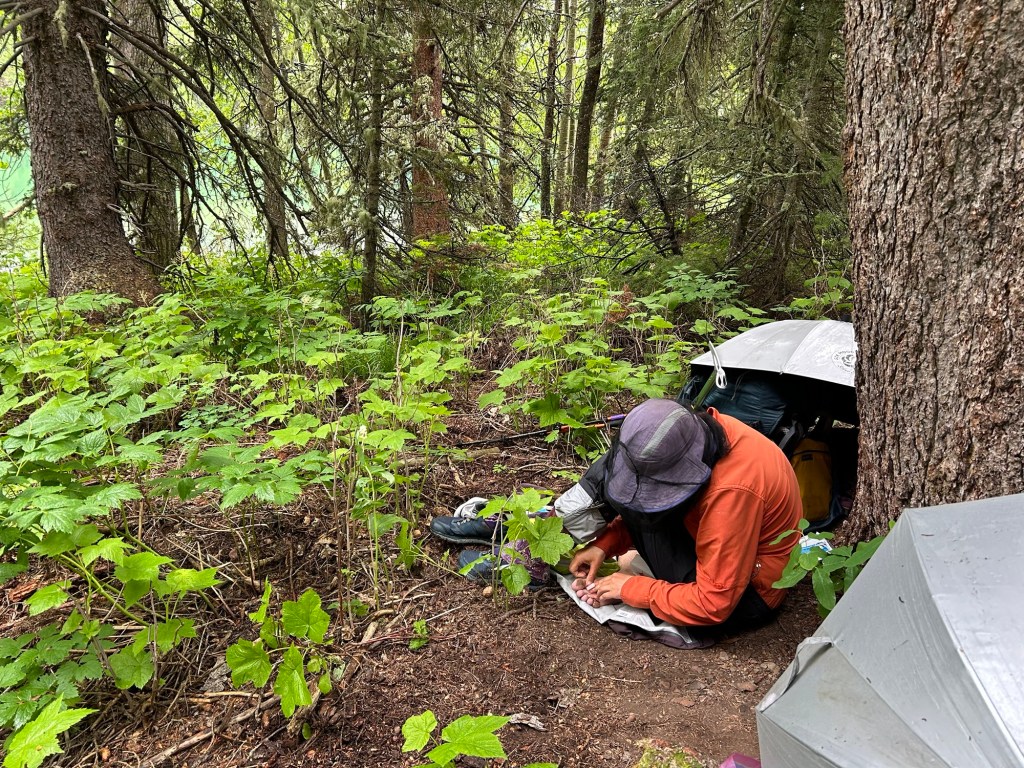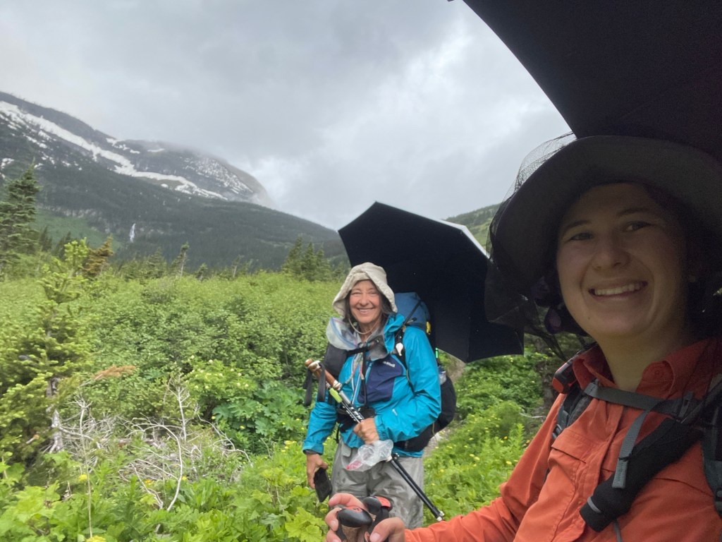 We arrived at our designated campsite that evening as the rain was letting up. It was a beautiful spot and I thought maybe that was the end of the holy shit day. But then I discovered I had lost my only eating utensil and was about to fashion some chopsticks out of my tent stakes or some sticks, when Mary offered to let me use her spoon. We all spread out our gear to dry while we were eating and that’s when the night threw one more curveball my way. Without any warning, the sky again let loose a downpour, drenching all the gear we had spread out to dry. It filled my open pack and made it difficult to hang my food bag.