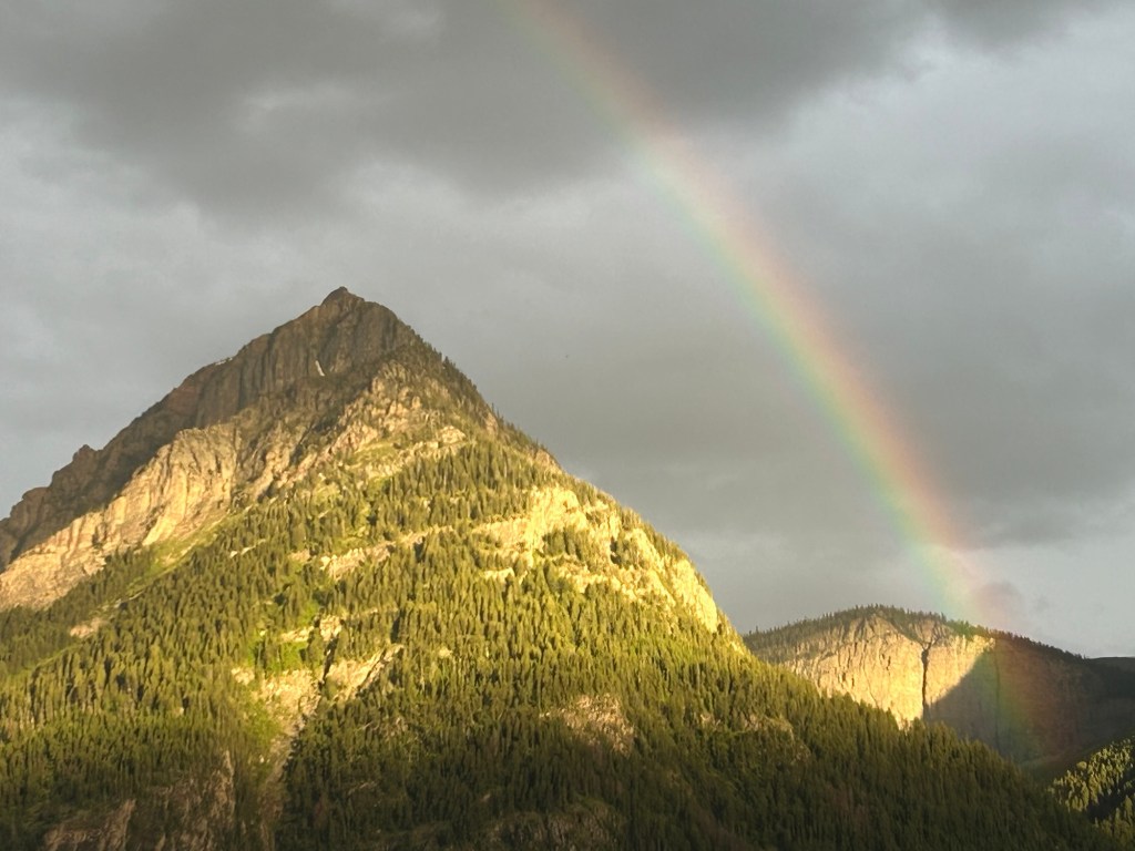 Sarah and I woke to a rainy day at Waterton Lake. Nevertheless, we were greeted by the morning light hitting the mountains surrounding the lake in a stunning way. And just as I was about to leave the lake, I looked up and saw l a magnificent rainbow. Perhaps this was foreboding of a positive day. Or perhaps not. I’ll leave that for you readers to decide.