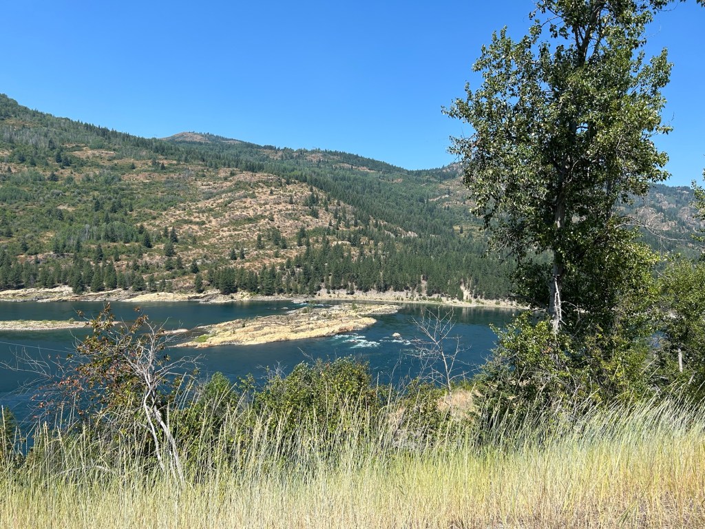 When I arrived in Metaline Falls it was extremely hot. I was surprised to see a sprinkler hose set up near a bench in town with a sign saying to use it to cool down. I was tempted to spray myself, but instead I ducked into the air conditioned ice cream shop. I bought a scoop of mango sorbet mixed with a scoop of coconut ice cream. I ate that delicious confection while having a lovely conversation with the woman who ran the shop. She hooked me up with another woman in town who rented rooms to hikers.