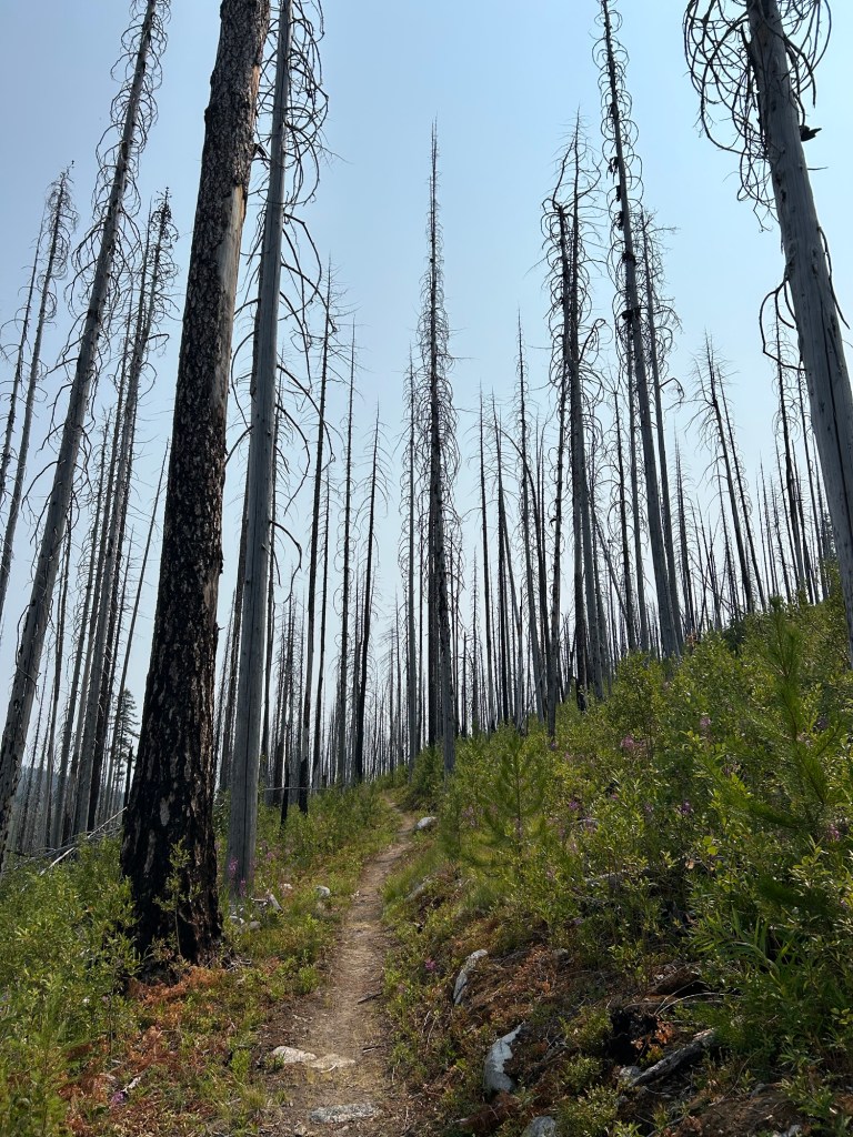 The stretch from Orient to Republic follows the Kettle Crest Trail. While it has a reputation of being a beautiful trail, hikers have to be careful going through a huge section of it because a number of years ago there was a large fire that burned 22 miles of the trail. As a result, I passed through a lot of opened forest. Luckily it wasn’t too hot and I was able to enjoy the widespread views through the burnt trees.
