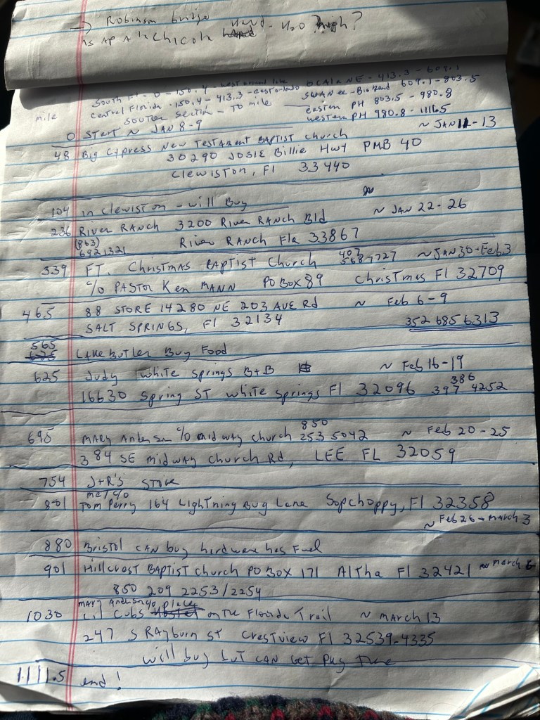 My final resupply list for the Florida Trail
