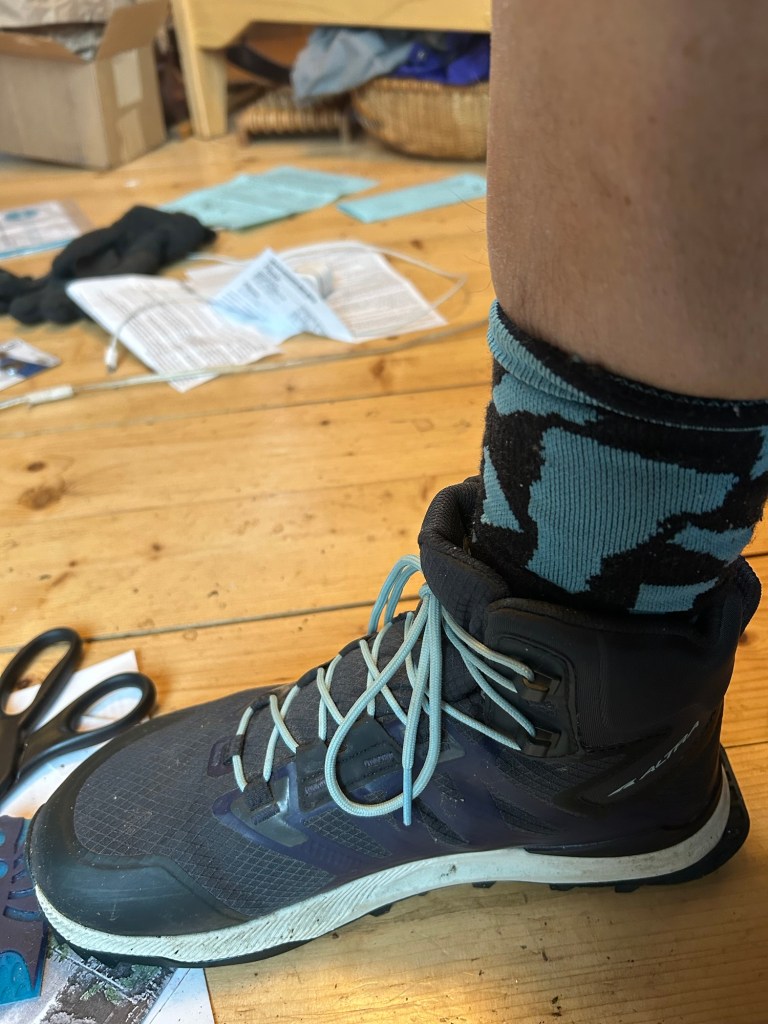 For a number of my recent hikes I used Hoka boots. I loved some of them while other models I really hated, so along with the make of a boot one has to be aware of the model. Hoka boots and shoes are liked on trails because of the cushioning they provide. But they are definitely on the expensive end and wear out extremely fast. I’ve had to re-glue lugs or complete soles back onto the boots within just 100 miles. Many people on the Arizona Trail were replacing their Hokas after only 300 miles of hiking. While some people are fine replacing shoes that often, I find it difficult to spend close to $200 on a pair of boots only to have them fall apart after a few hundred miles of walking. After dealing a number of times with less than stellar customer service from Hoka, I decided to try different boots on the Arizona and Pacific Northwest trails. I found some Keenes at a really good price and was really happy with them on the Arizona Trail. My one pair of boots easily made the whole 800 mile journey and when early on a hook broke off the top of the boot, Keene sent me a new pair with no questions asked. I did miss the cushioning of the Hokas but I enjoyed the wide toolbox of the Keenes which prevented any blisters. I do wonder if the lack of cushioning contributed to my broken feet on the Pacific Northwest trail, though I suspect the breaks happened because I twisted my feet in the horrible bushwhacks of that trail.