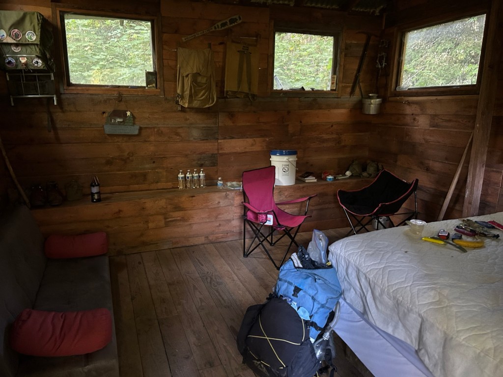 After leaving the State Park and entering the woods, I discovered a rustic cabin Greg keeps available for PNT hikers. He runs a B&B close by and when I texted him and told him I was at the cabin he came up. We had a lovely chat about the antique hiking gear decorating the walls of his cabin. Much of it was gear I used when I first hiked the Appalachian and Pacific Crest Trails. It reminded me that I, too, have become an ancient relic of sorts.