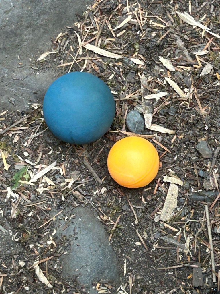 The arch of the foot I had broken in Florida had been feeling really tight and caused some posterior tendinitis in that ankle. I had been wishing I had a little ball to roll my foot on because in Florida that had helped the tightness in the arch. I had to laugh when, after I emerged from the thick woods onto the walkable road, I discovered a small blue ball by the side of the road. All the while I was in the bushwhack on the verge of wanting to give up, I reminded myself if I kept persisting I would get what I needed. And now, here was a lightweight ball just right for my needs. I really laughed that evening when I found yet another small lightweight ball at the campsite I chose to stay at. It was a lovely campsite by a river and I was able to soak my foot before stretching both arches out on the balls and calling it a night.