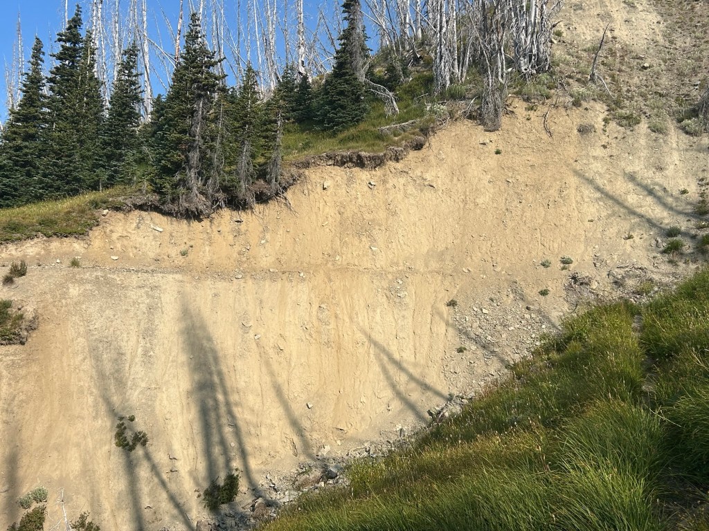 Cameron pass afforded me yet another challenge to its steep ascent by presenting me with my first of what would be numerous washouts on the trail. Any semblance of trail completely disappeared and I had to cut steps into what was now a sheer drop off. Each time I hit one of these I wanted to quit, but I knew I couldn’t go back the way I had come so I had to stifle my fear and continue on. I kept telling myself “other people have done this, so so can I.” That became my mantra all the way to the top of Cameron Pass. I was relieved when I reached the top of the pass to encounter a young woman who spent time chatting with me, assuring me that the rest of the way down to Dose Meadow, while steep with some 50% grade drops was not as exposed or frightening. She assured me that part of that trail had beautiful views and was well worth the walk. While that was relieving to hear, what was disturbing was that this kind, smart young woman told me she had just graduated with a PhD in climate sciences, and because of what was happening in this country, she was thinking of going to work in another country. She was the fourth young scientist I met in the last month who told me they were thinking of leaving the country to be able to pursue their work.