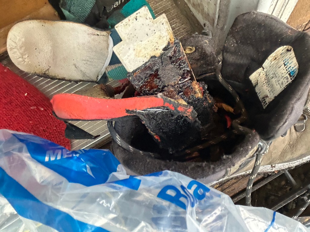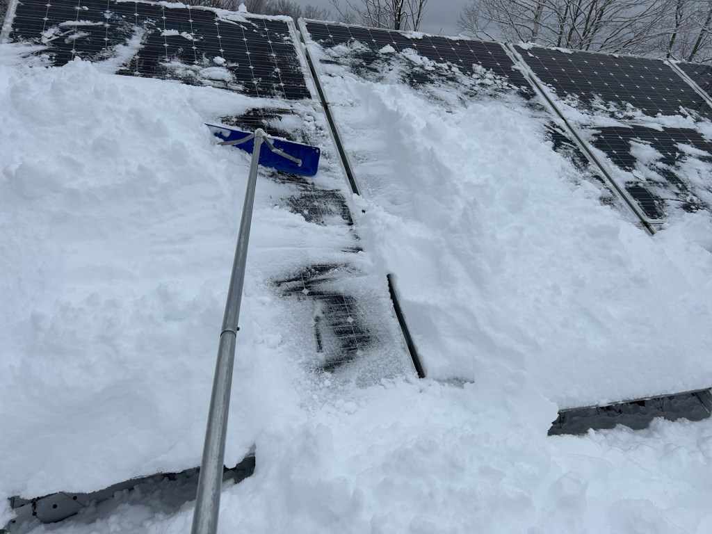 I felt proud of myself for having kept going and found a way out of my predicament, but not long after I was again thrown back into feeling completely overwhelmed. After days of struggling to keep my foot warm while clearing snow from my solar panels and doors, I noticed the carport I put up this fall was starting to collapse from the weight of the snow. Because of my foot, I hadn’t stayed on top of clearing it, so I pulled out the roof rake and spent a day shoveling off the carport roof. The whole time I was gasping for air. While slowly improving, breathing issues still are the norm since breathing in the lithium ion battery smoke when I was peeling the burning boot off my foot.